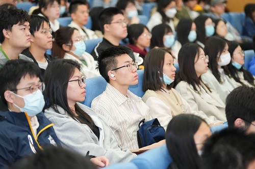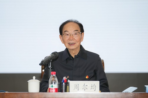 讲座伊始,周尔均精神矍铄地走上讲台,在场师生响起热烈的掌声,向这位90岁却仍激情满怀的共产党人致敬。