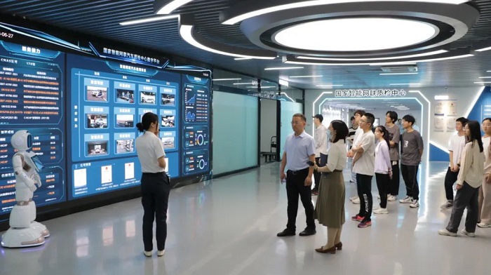 期间,师生一行共同参观了中汽中心文化展廊、科技展厅、天津检验中心碰撞试验室及国家智能网联质检中心数字展厅,了解了中汽中心发展历程、企业文化及创新成果。