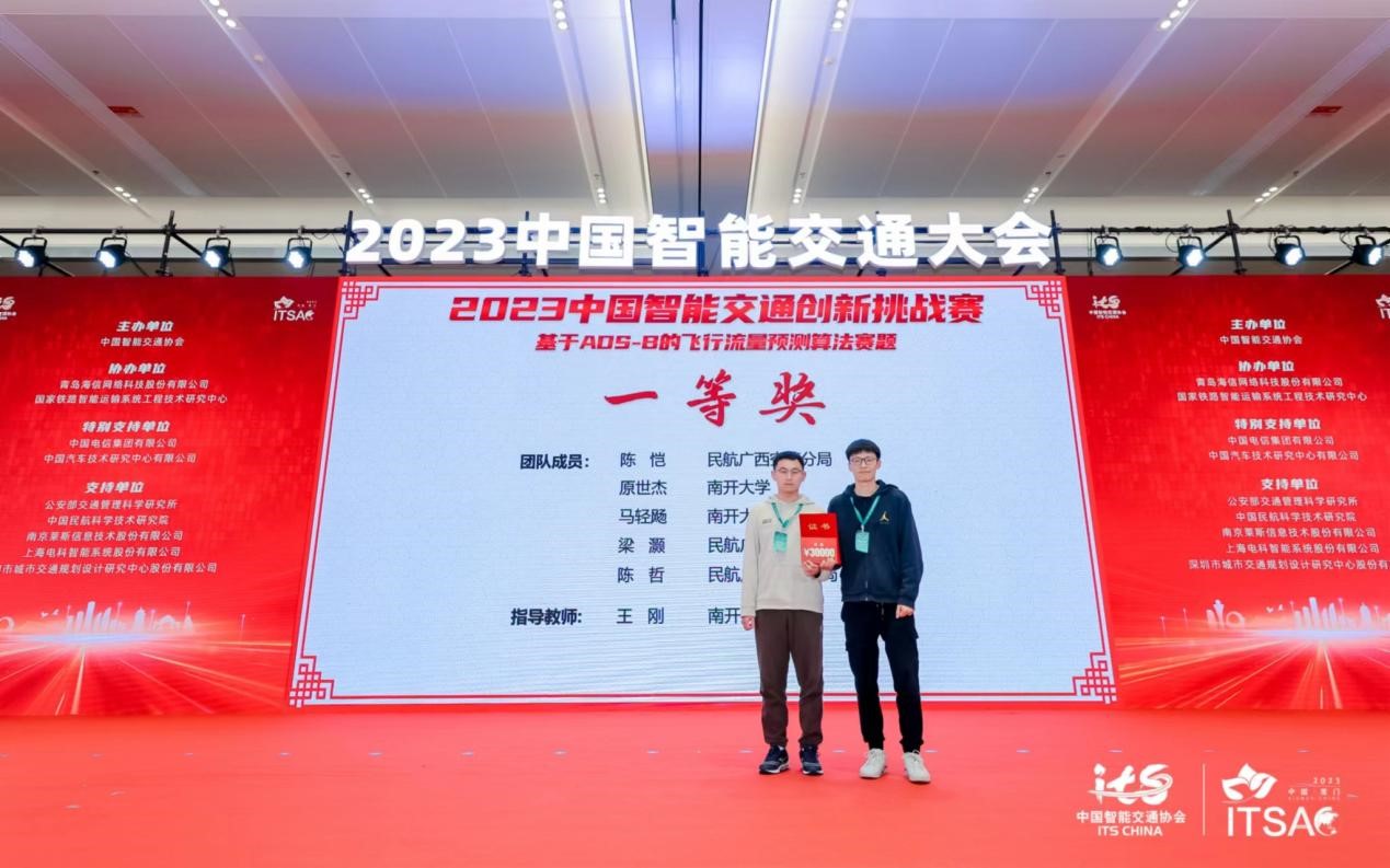 11月17日,在2023首届中国智能交通创新挑战赛中,我院研究生原世杰、马轻飏与广西空管分局联合组成的“铜鼓战队”以第一名的综合成绩荣获一等奖。