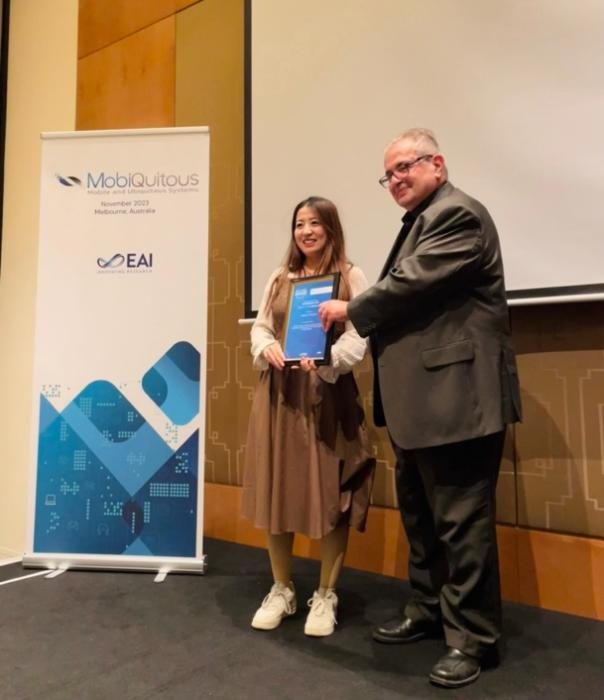 11月14日至11月17日,第20届EAI移动和泛在系统国际会议:计算、网络和服务(20th EAI MobiQuitous :International Conference on Mobile and Ubiquitous Systems: Computing, Networking and Services)在澳大利亚墨尔本举办。学院博士生于朝阳和赵思浓参会,于朝阳论文获评EAI MobiQuitous 2023会议最佳论文。
