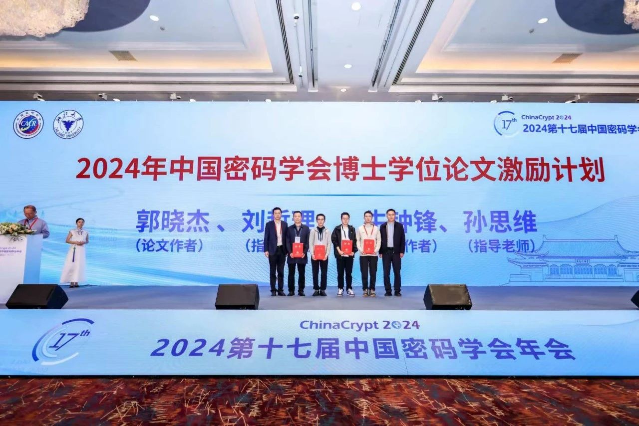 网络空间安全学院博士毕业生郭晓杰入选中国密码学会博士学位论文激励计划