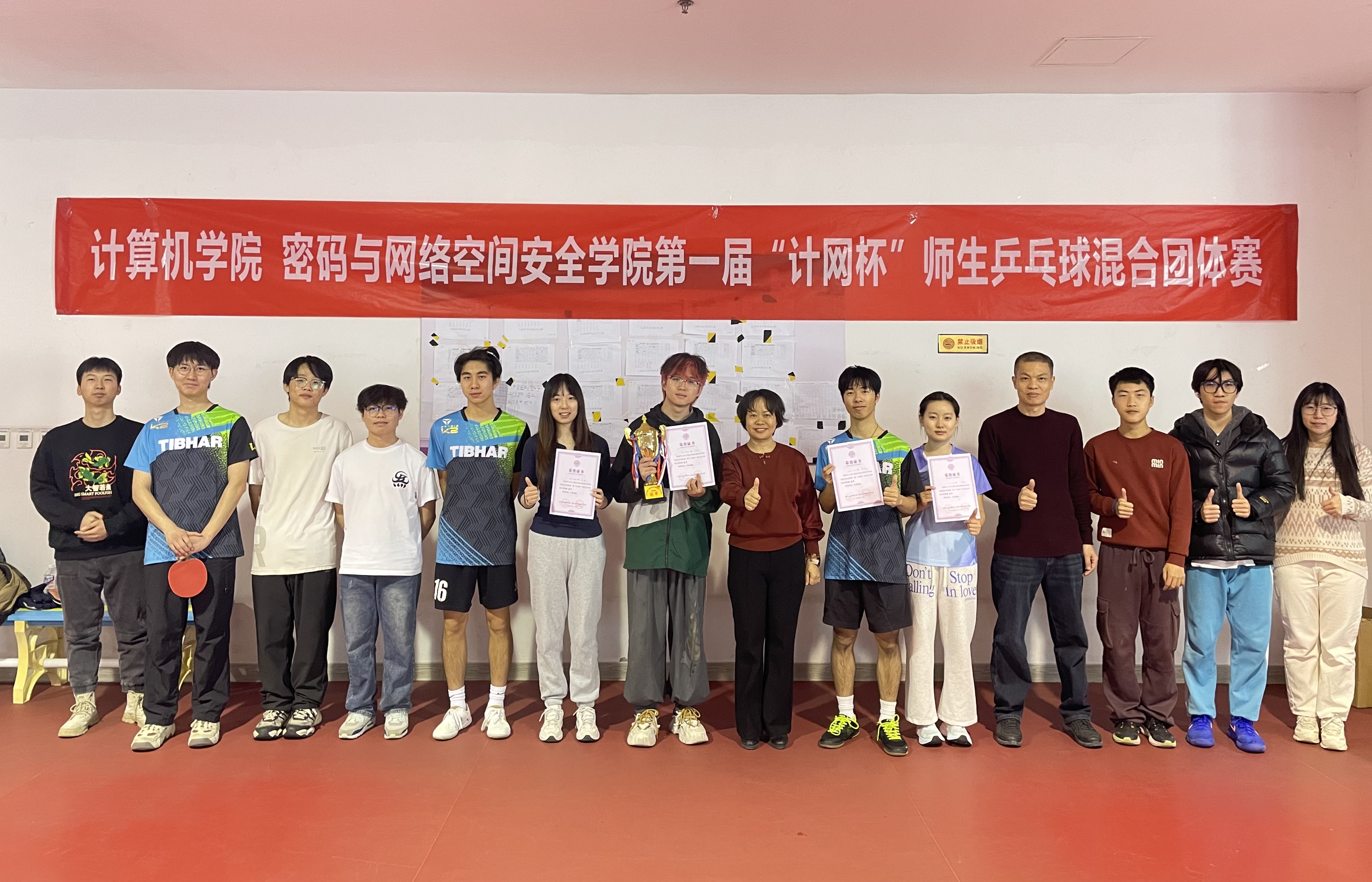 (通讯员 曾云腾)11月底以来,计算机学院和密码与网络空间安全学院第一届“计网杯”师生乒乓球赛持续火热进行,于近日顺利完赛。本次赛事由学院工会主办,学院乒乓球队、学生会、研究生会及学生课外活动指导中心承办,吸引学院近百名师生踊跃报名、同台竞技。