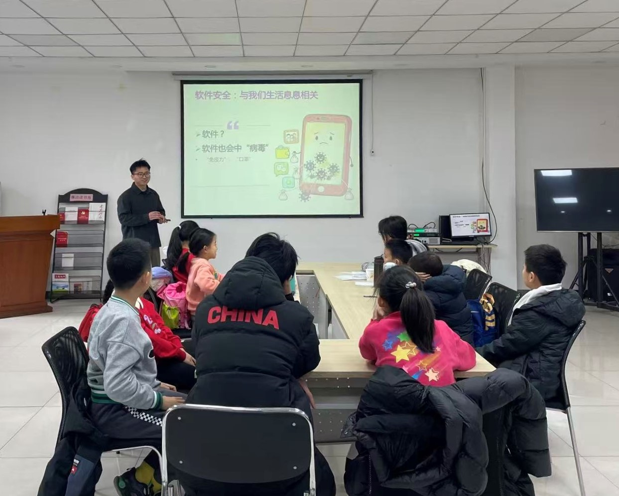 立足学院学科特色,支部党员以所在的数据与智能系统安全教育部重点实验室主要研究方向为例,为青少年带来一场通俗易懂、生动有趣的网络安全前沿技术科普课,巧用形象化比喻、生活化案例,将软件安全、物联网安全、隐私计算、人工智能安全等前沿领域知识,转化为孩子们可感可知的启蒙内容,有效开拓了青少年的科技视野,激发了孩子们对网络安全领域的探索兴趣。