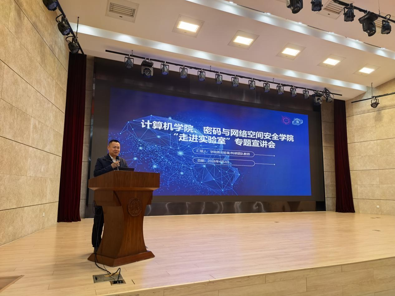 为帮助本科生深入了解学院科研方向与平台资源,引导学生尽早规划科研路径,2026年4月2日下午,计算机学院、密码与网络空间安全学院“走进实验室”专题宣讲会在津南校区综合业务西楼报告厅圆满举办。活动共吸引300余名本科生踊跃参与,现场座无虚席,交流氛围热烈。